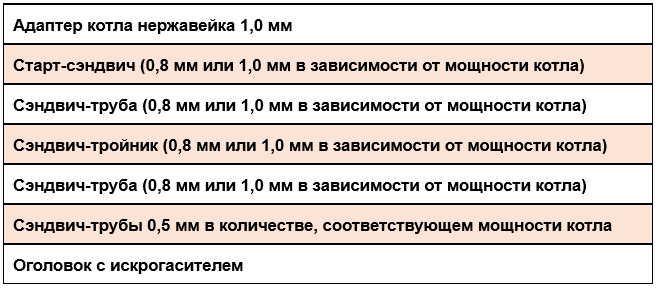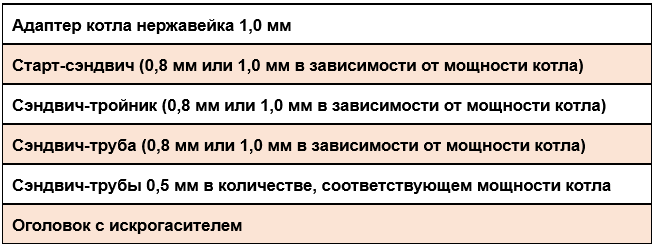 Нержавеющие сэндвич-комплекты— отличный вариант устройства надежных и долговечных дымоходов. Конструкция проста в монтаже, собирается из отдельных элементов по принципу детского конструктора Лего. При необходимости можно легко заменить любой элемент конструкции. . Внутренняя часть дымоходов выполнена из жаростойкой нержавеющей стали AISI 430, имеющей высокую коррозионную стойкость. Утеплитель представляет собой природный, экологически чистый материал. Он не токсичен и безопасен при нагреве, не подвергается воздействию плесени. Наружная часть выполнена в двух вариантах нержавейка или оцинковка. . В комплект входят элементы, необходимые для монтажа стандартного дымохода. При необходимости можно дополнить нужными комплектующими.